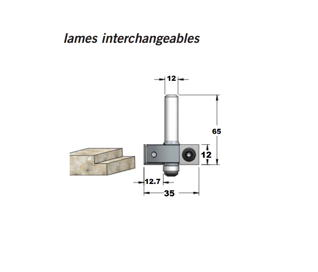 Fresa de rebaje para cantos de encimera con vástago S12 cuchillas intercambiables