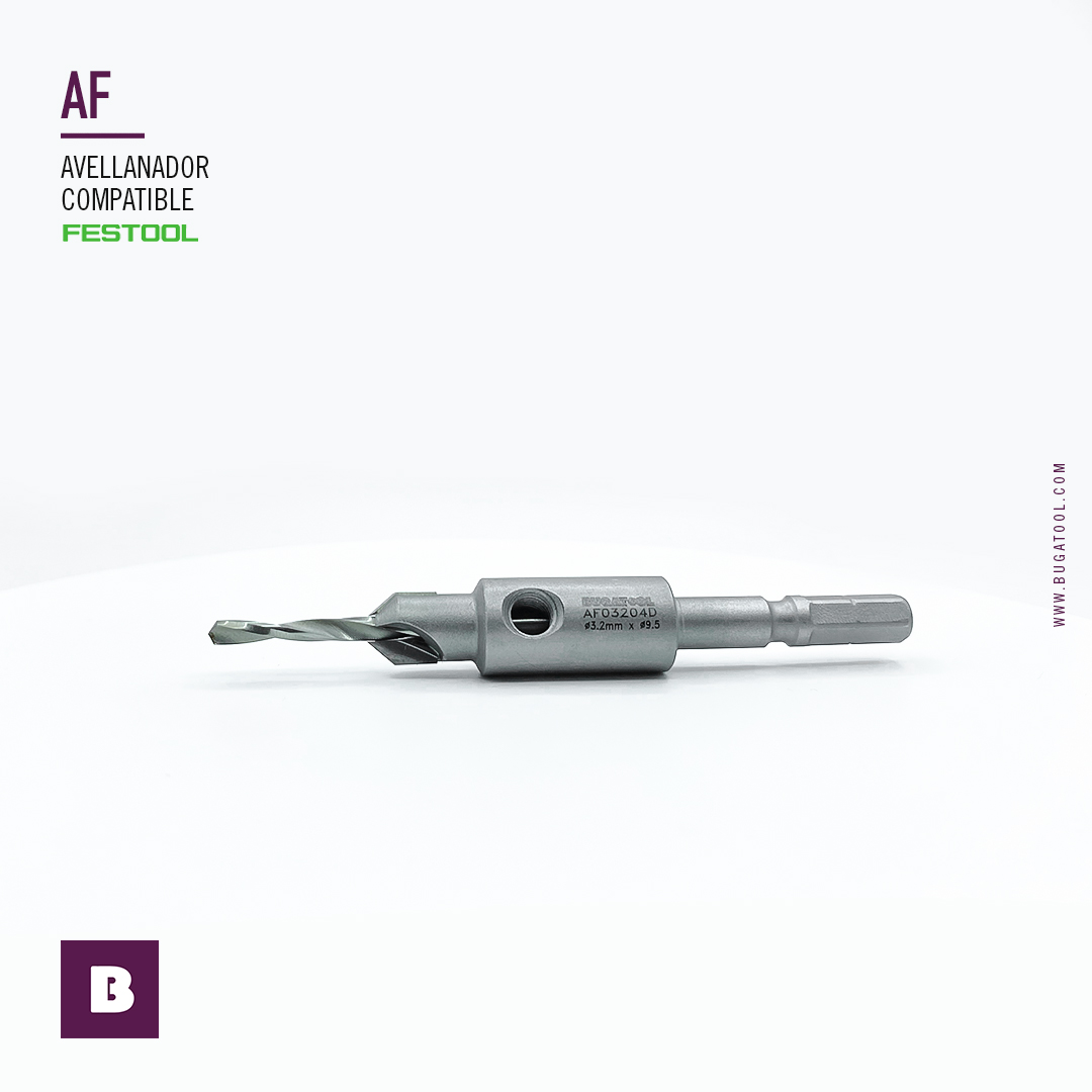 Avellanador TCT con Broca resta de 3.2 mm regulable compatible con el enganche FESTOOL de los atornilladores con mandril CENTROTEC ref 577050 y 576448