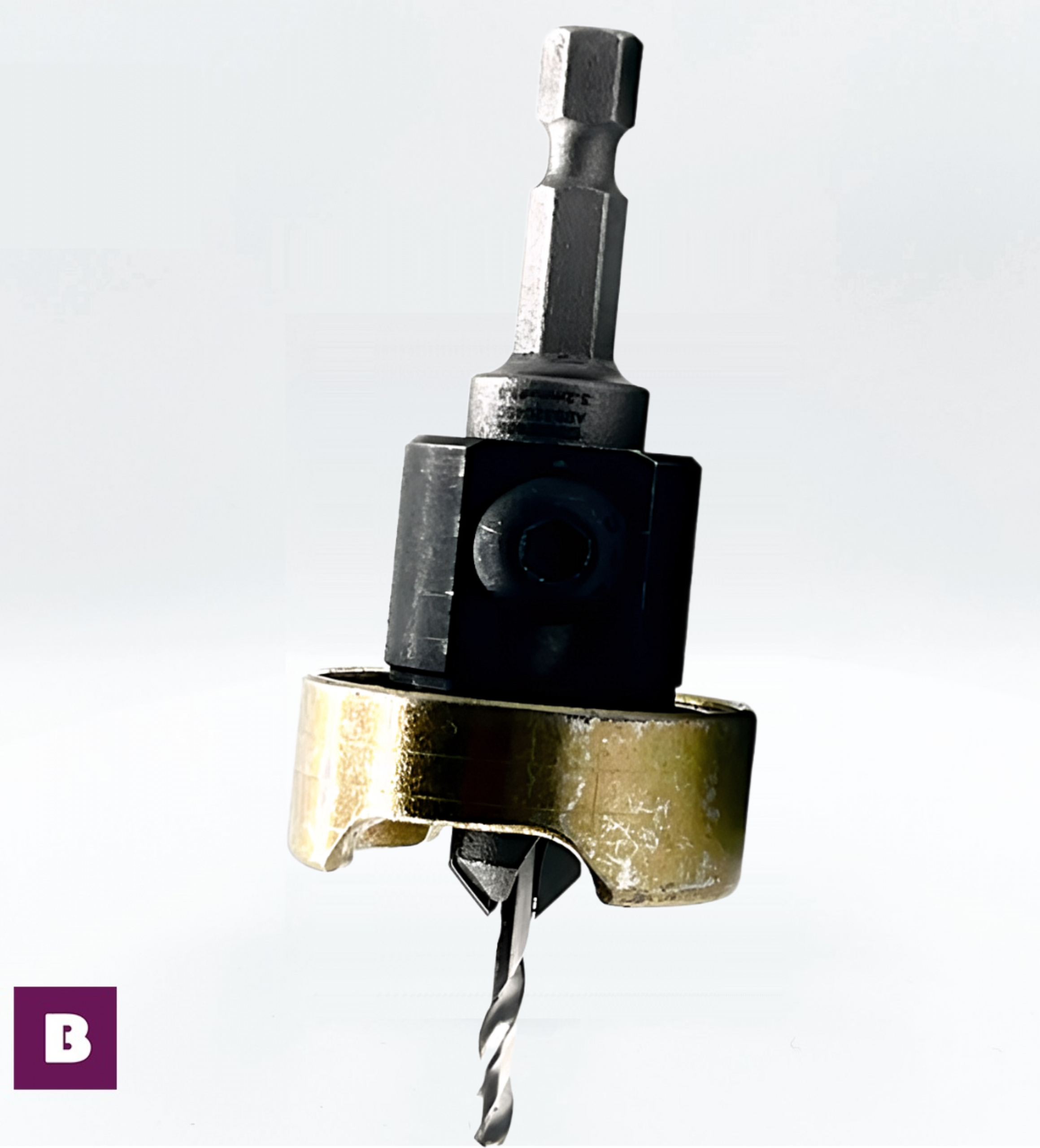 Avellanador cero fricción con tope PRO de profundidad ajustable y Broca HSS recta.  Cambio rápido 1/4 (6.3 mm) Mango hexagonal adaptable a todos los atornilladores estándar.