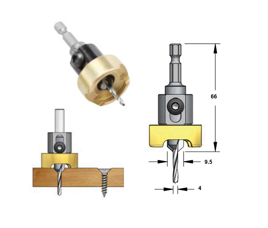 Avellanador con Broca HSS de 4 mm cero fricción con tope PRO con fresa de 9.5 mm