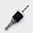 Avellanador de baja fricción con tope de profundidad ajustable y Broca HSS recta.  Cambio rápido 1/4 (6.3 mm) Mango hexagonal adaptable a todos los atornilladores estándar.