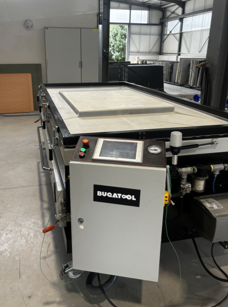 LA PRENSA DE MEMBRANA Prensa de vacío con membrana de silicona de 2 mm resistente hasta 230 °C.
