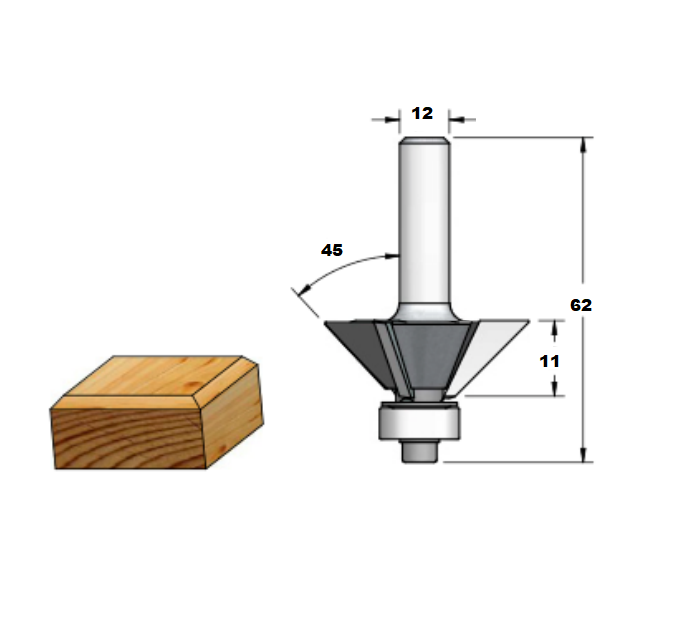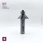 La Fresa de cortar a 45º con vástago S12 y 3 cuchillas es utilizada en fresadoras de mano y fresadoras de mesa. Esta fresa crea cantos en ángulo de 45 grados en materiales como madera y superficies sólidas.