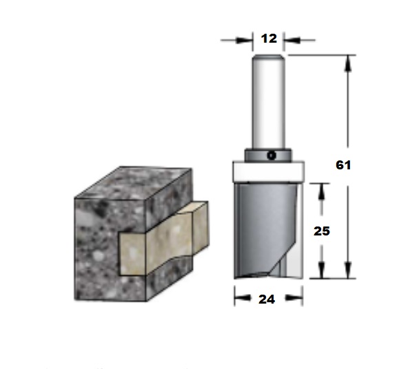 Fresa industrial para enrasar cantos de superficie solida con vástago S12 con rodamiento en parte superior