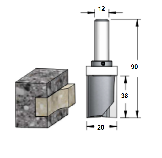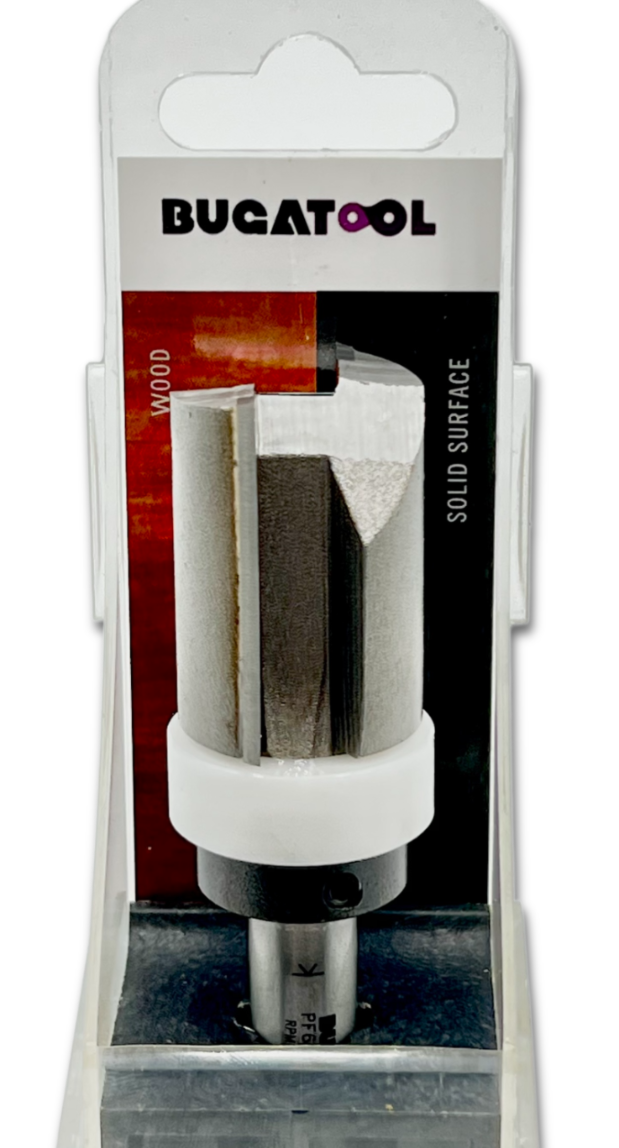 La fresa de enrasar cantos de superficie sólida con vástago S12 y rodamiento en la parte superior se utiliza en trabajos de carpintería y ebanistería para perfilar y dar forma a bordes de superficies sólidas, como mesas, encimeras o estantes.