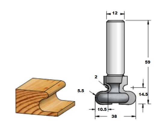 La fresa esta diseñada especialmente para crear tiradores Finger Grip en diversos materiales.