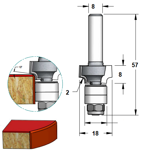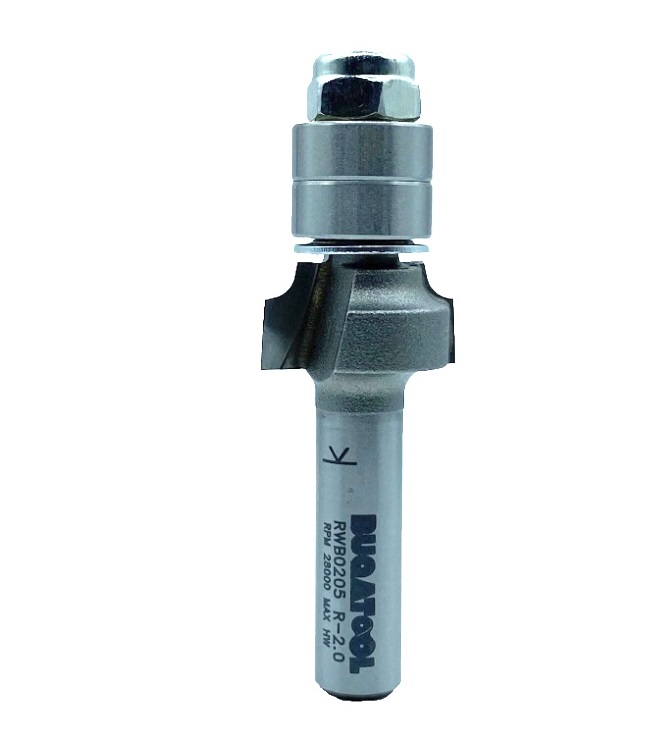 Fresa para redondear con radio 2 mm las esquinas de cantos de Solid Surface con rodamiento doble para una estabilidad d la herramienta sin fallos