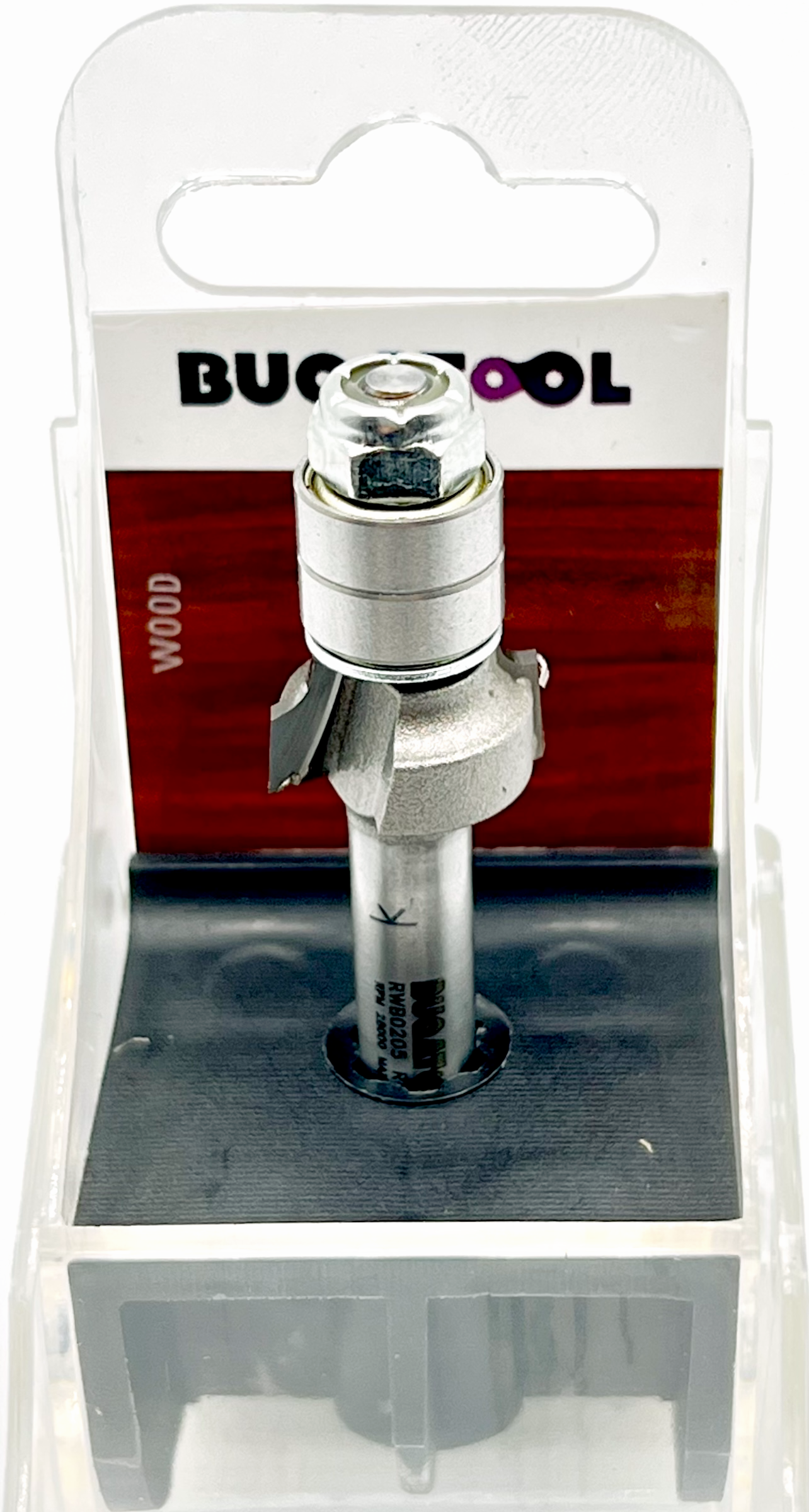Fresa para redondear las esquinas de cantos de Solid Surface o de madera con rodamiento doble. Es una herramienta de corte utilizada para dar forma a las esquinas de los bordes de los materiales de madera o de superficie sólida. La fresa tiene dos cuchillas que permiten un corte rápido y suave, lo que facilita el trabajo de dar forma a los bordes.
