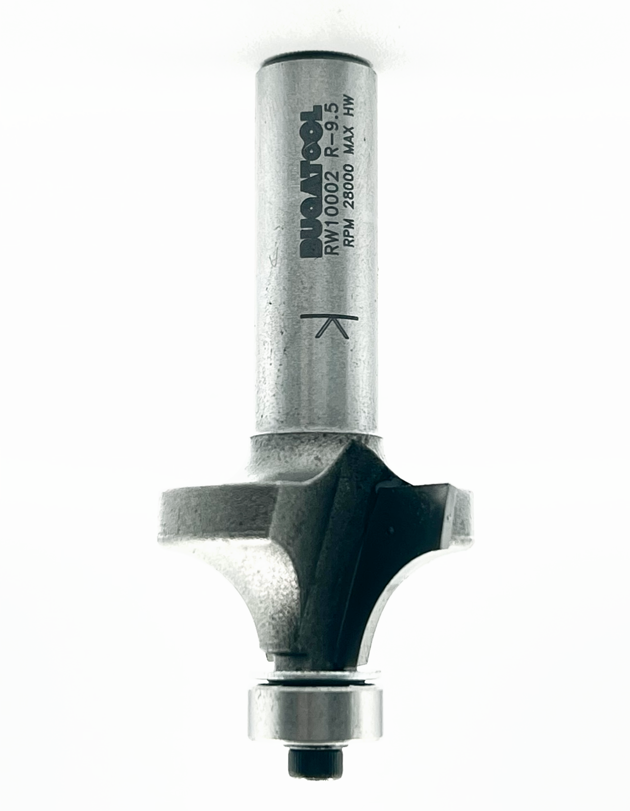 Fresa industrial de radio 10 mm para redondear cantos de madera con 2 cuchillas con vástago S12 y rodamiento de metal.