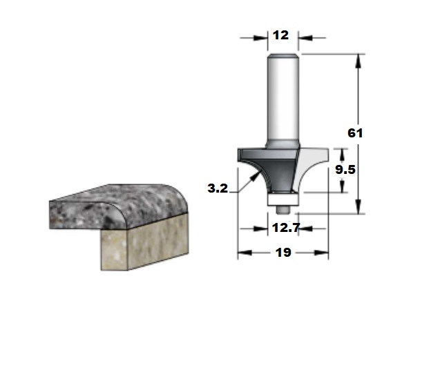 Fresas de radio 3 para redondear cantos de Solid Surface con 2 cuchillas diseñadas para redondear los cantos de encimeras fabricadas con materiales duros, como el solid surface, de manera eficiente y precisa. Con su estructura de doble hoja, esta herramienta es capaz de realizar el trabajo en una sola pasada, obteniendo un resultado uniforme y de alta calidad.