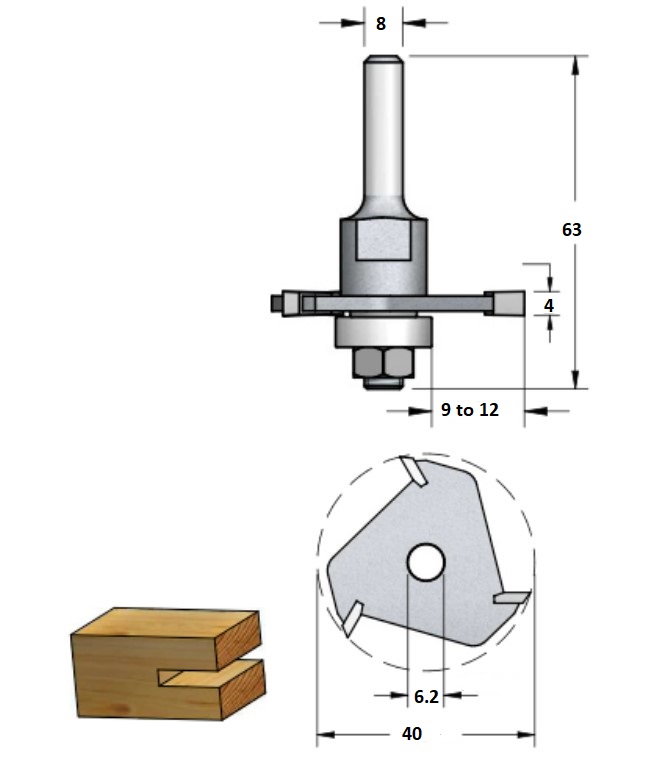 Incluye cortador de ranuras, eje y 3 guías de rodamiento de bolas.