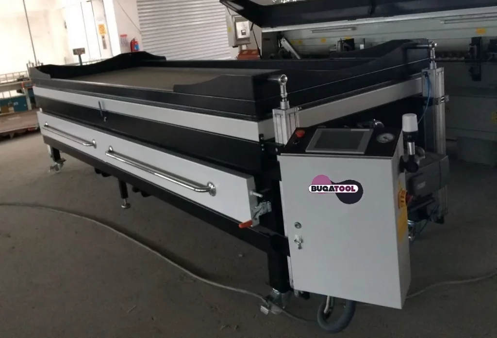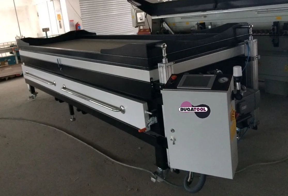 La BUGA Dúo LIFT 3812 está indicada para termoformar placas enteras de Solid Surface de forma industrial. El ritmo de fabricación es de unos 30 minutos por piezas termoformadas en 12 mm de espesor.