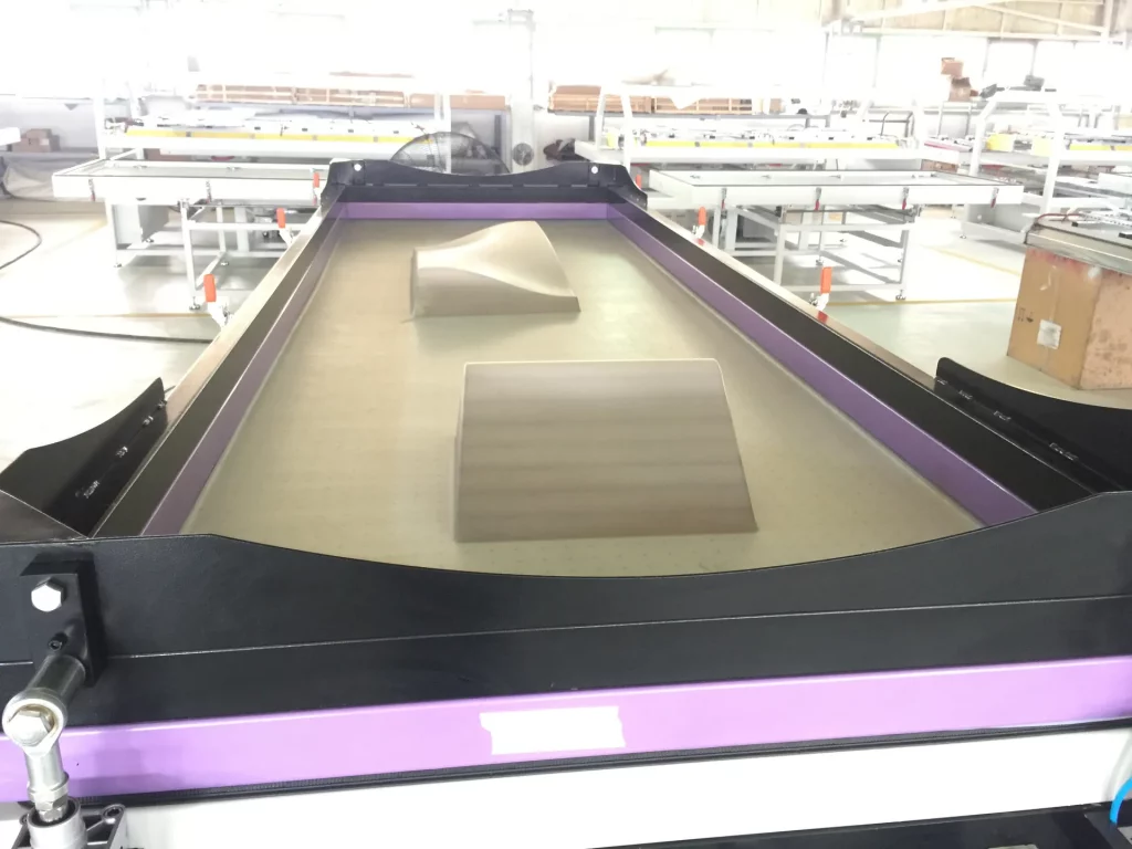 - Prensa de vacío con membrana de silicona 2 mm resistente a 230ºC