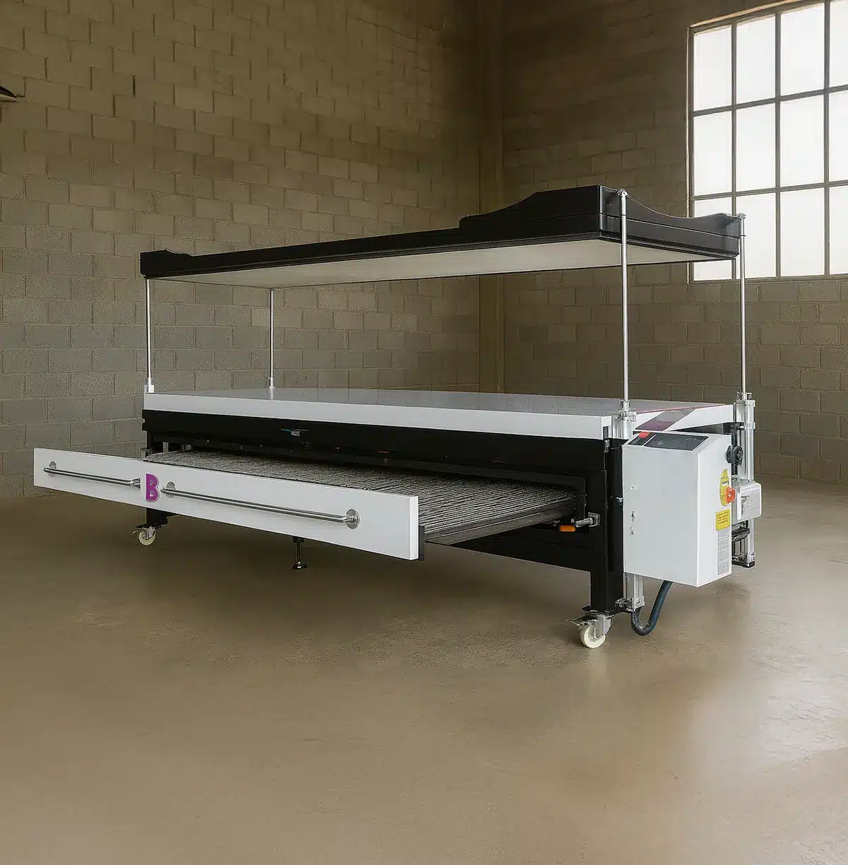Prensa de membrana y horno están combinados en un único chasis con el fin de optimizar el espacio en su taller sin renunciar a la máxima eficiencia.